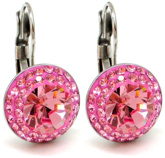 Osztrák kristályos különlegesség! Sláger termék! Gyönyörű light rose színű osztrák kristályok felhasználásával készült látványos kapcsos fülbevaló 12 mm-es méretben, bőrbarát, nemesacél alapon gyönyörű csillogással. Két sorban apró kövekkel, középen egy nagy kristállyal. Kitűnő ajándék ünnepekre, úgy mint születésnap, névnap, ballagás.