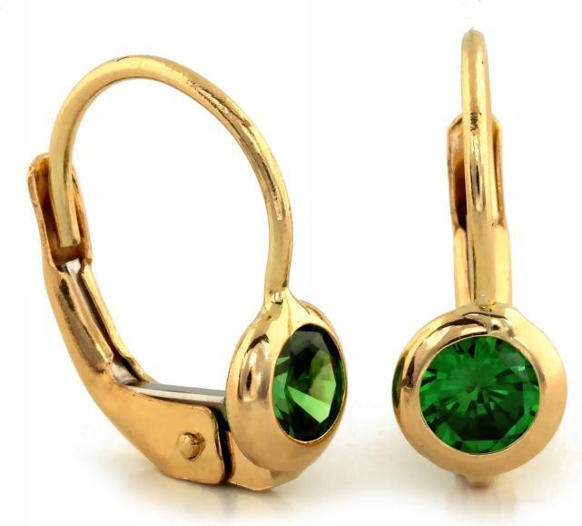 Arany fülbevaló 585-ös angol kapcsos zöld kővel, divatos arany ajándékba (Lovrin)ALLEGRO