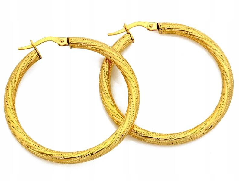 Arany fülbevaló 585-ös, csavart karika 37mm-es, díszített, angol kapcsos, ajándéknak (KL_12232A_585)