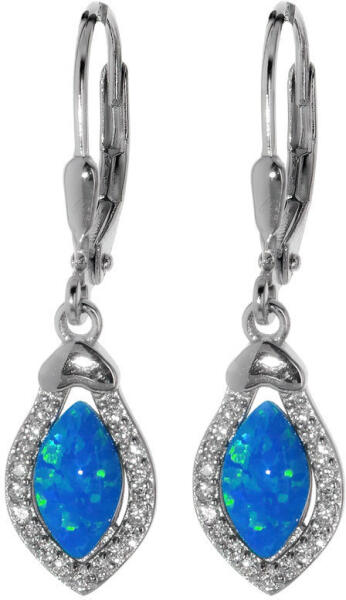 Argento-ekszer Ezüst fülbevaló - átlátszó kerek cirkóniák, kék, kék magocska alakú szintetikus opál (66467)