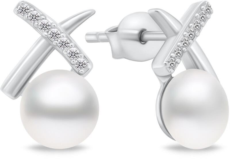 Brilio Silver Csillogó ezüst fülbevaló gyöngyökkel EA906W