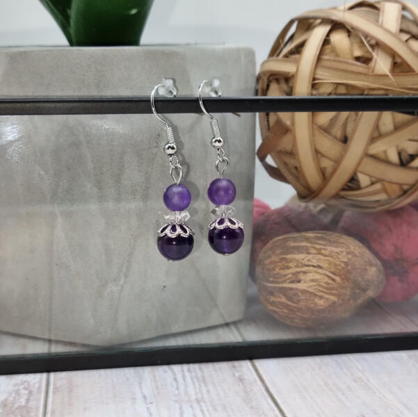 Ametiszt fülbevaló valódi ásványból.