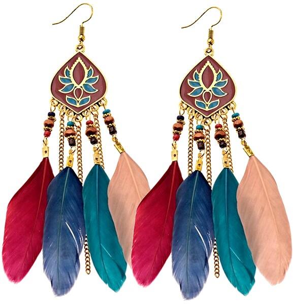 EdiBazzar Lógó hosszú toll fülbevaló Boho retro női színes tollak (5905884076767)