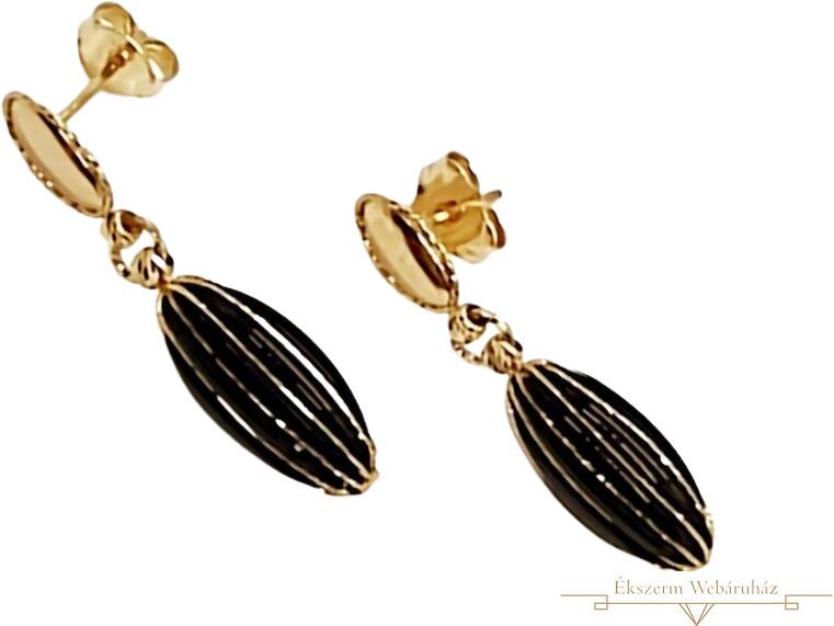 ÉkszerM Arany Fülbevaló Onix Kővel AU 81094