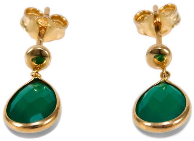Egyszerűen elegáns, zöld színű, csepp alakú acháttal díszített lógós bedugós arany fülbevaló.