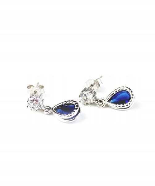 Elegáns ezüst fülbevaló kék cirkóniákkal F017N