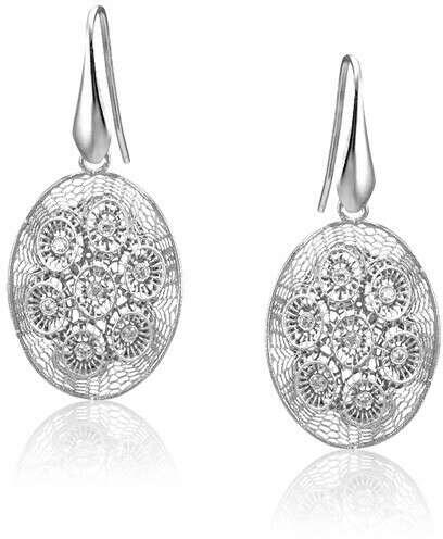 Ezüst Csipke Fülbevaló - Ovális - Ródium Bevonat