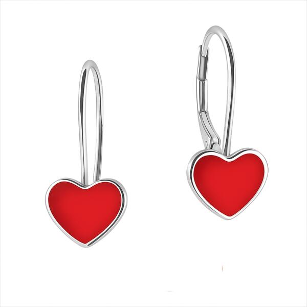 Ezüst fülbevaló ajándék kislánynak 925 szív piros dobozban
