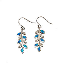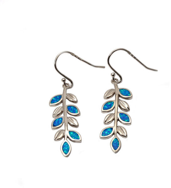 Ezüst levél mintás opál fülbevalóRészletek Varázslatosan elegáns, természet ihlette 925 ezüst fülbevaló, amely minden mozdulattal életre kel. A finoman megmunkált levélmotívum időtlen szépséget sugároz, míg az aprólékosan felváltva berakott kék opál kövek a tenger mélységét és a nyári égbolt csillogását idézik. 4,9 gr Hossz: 3,5 cm / akasztóval : 4 cm Szél: 1 cmEzüst ékszereinket díszcsomagolásban küldjük.