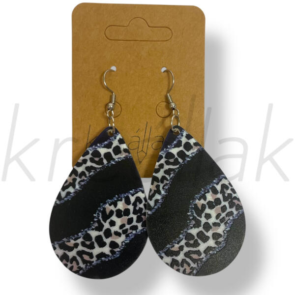 Fekete csepp párducmintás fülbevaló