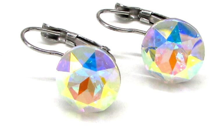 Színjátszós AB színű ragyogó kristállyal díszített kézműves, bőrbarát kapcsos fülbevaló, 12 mm-es méretben. Jó hír, hogy bátran viselhetik azok is, akik fémérzékenyek! Erős nemesacél alapon készült, nem kopik, nem színeződik el. Kitűnő ajándék ünnepekre, úgy mint születésnap, névnap, vagy a Karácsony!