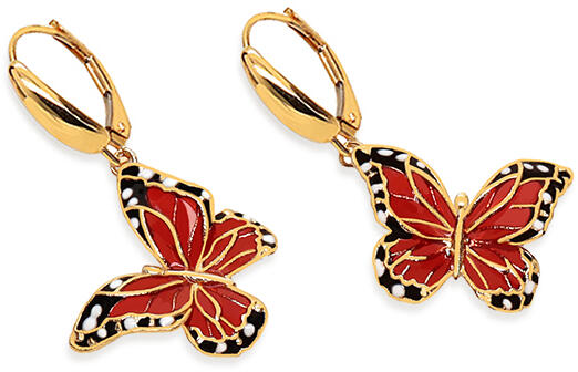 Egyedi fülbevaló, piros pillangó, sárga arany, 14K, modell IZ31608
