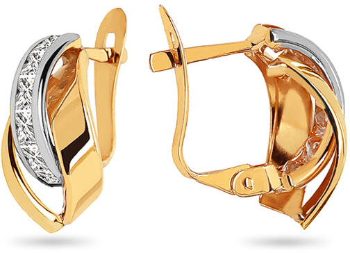 Ezeknek a bájos fülbevalóknak a szépsége a nem mindennapi formájukban és kidolgozásukban rejlik. A kéttónusú arany tónus kiemeli a tiszta cirkóniák fényét. Az arany felületet magas polírozással kezelik. Megbízható angol kapcsolót használnak.