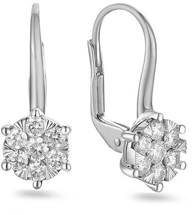 Elegáns fehérarany fülbevaló. A fülbevalót 0,420 karát össztömegű, H színű és SI1 tisztaságú átlátszó gyémántokkal kirakott díszítés díszíti. A gyémántok iZlato® hitelességi tanúsítvánnyal rendelkeznek.
