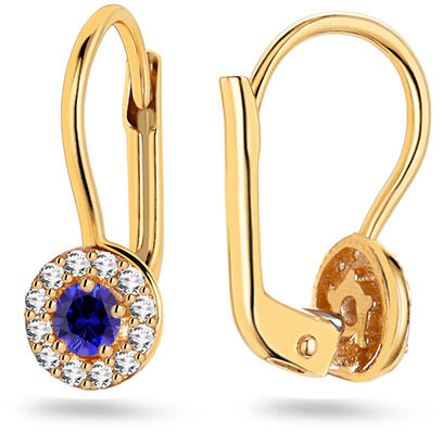 Női fülbevaló szimulált zafírral és cirkóniákkal, 9K sárga arany, modell IZ31656HR