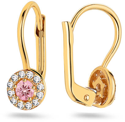 Női fülbevaló utánzott rózsakvarccal és cirkóniákkal, 9K sárga arany, modell IZ31654HR