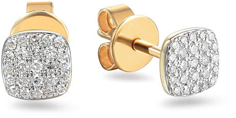 A négyzet alakú, finom fülbevaló szikrázó, briliáns csiszolású gyémántokkal van kirakva, amelyek összsúlya 0,130 ct, színük H, tisztaságuk SI1. A fülbevaló sárga aranyból készült. Finom, minimalista kialakításuk minden olyan nőn megállja a helyét, aki a klasszikus stílust kedveli. A pillangócsattal ellátott zár kényelmes és biztonságos illeszkedést biztosít.