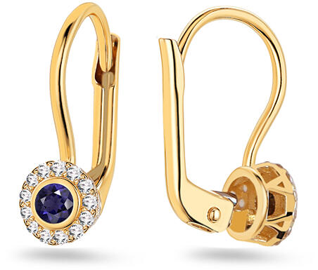 Virágos fülbevaló szimulált zafírral és cirkóniákkal, sárga arany, 9K, modell IZ31651HR