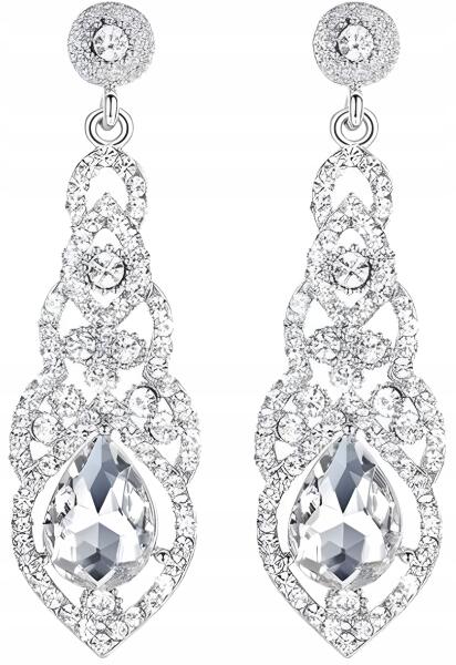 Hosszú, ezüst színű, cirkónia köves, menyasszonyi fülbevaló kristályokkal ajándék (F41)ALLEGRO