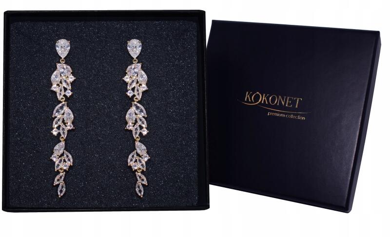 Kokonet Arany esküvői fülbevaló a Menyasszonynak kristályokkal hosszú könnyű lógós (8-0566)ALLEGRO