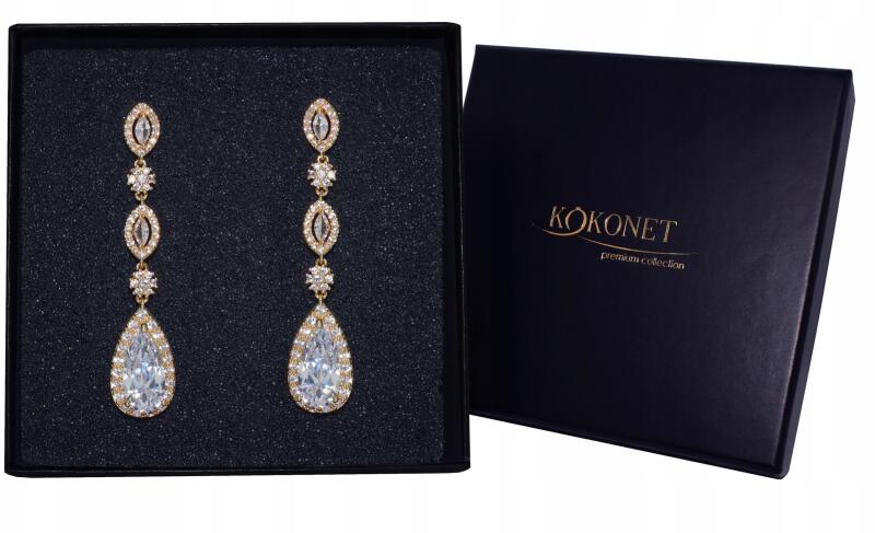 Kokonet Elegáns esküvői fülbevaló könnycseppekkel Arany hosszú (8-0535)ALLEGRO