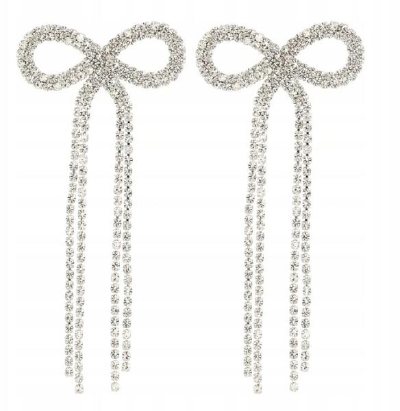Kokonet Ezüst fülbevaló masni elegáns csillogó estélyi hosszú szálak (3-0567)ALLEGRO
