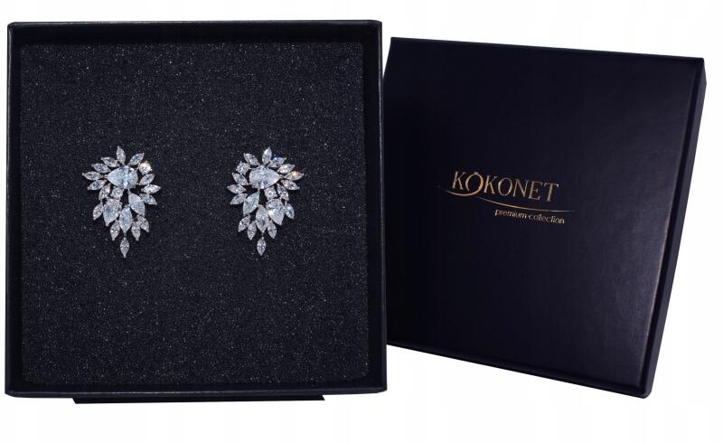 Kokonet Fülbevaló ezüst esküvői levelek Strasszok csillogás Wow (8-0397)ALLEGRO