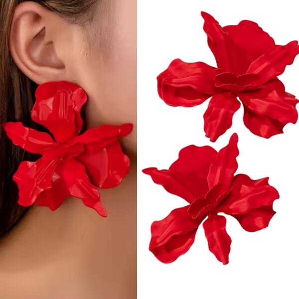 Kokonet Fülbevaló piros Virágos nagy virágos matt esküvő áldozás party Wow (3-0534)