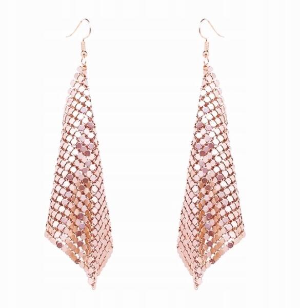 Kokonet Fülbevaló rózsaszín arany réz lógós könnyű hosszúkás látványos csoda (3-0569)ALLEGRO