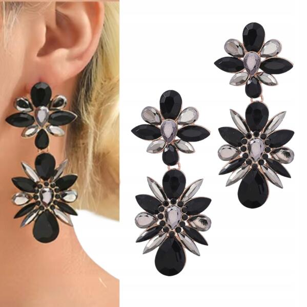 Kokonet Hosszú acél fülbevaló fekete arany cirkóniákkal látványos nagy (3-0577)