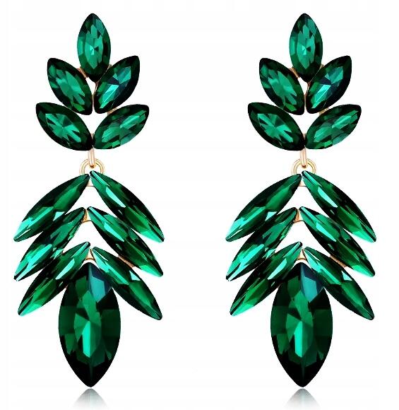 Kokonet Hosszú arany fülbevaló csepp könnycsepp smaragd zöld elegáns (138052876)ALLEGRO