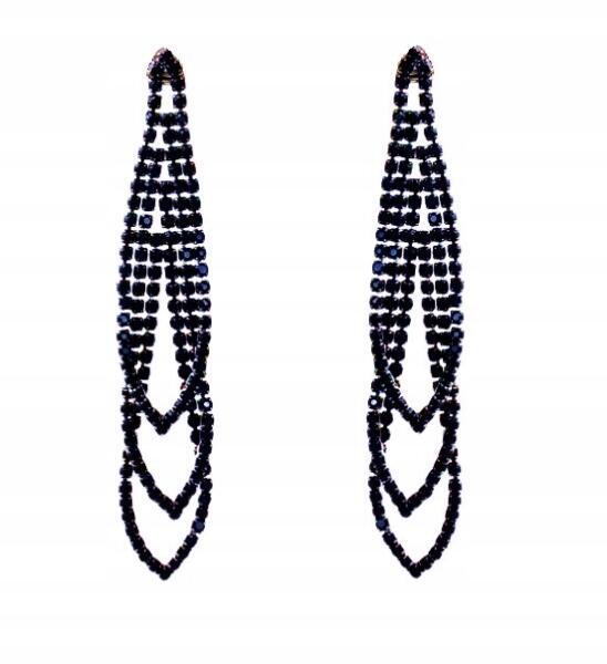 Kokonet Hosszú fülbevaló grafit sötétkék strasszok finom csillogó party (3-0511)