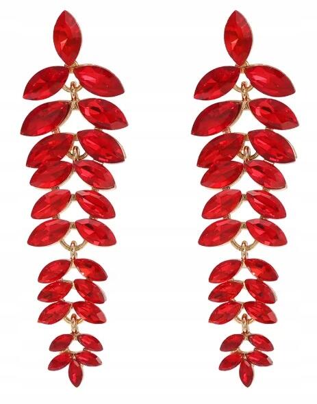 Kokonet Hosszú, piros, lógós levél fülbevaló arany színű stifttel, látványos, Wow hatás (3-0415)ALLEGRO