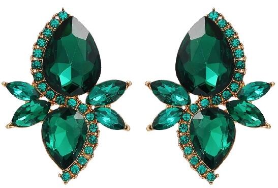 Kokonet Közepes fülbevaló zöld smaragd könnycsepp arany csepp fülbevaló stift (3-0490)