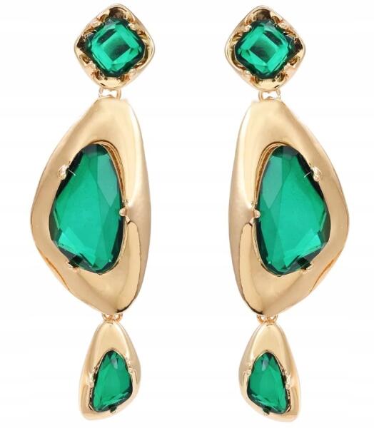 Kokonet Nagy arany felfújható fülbevaló zöld kő Vintage retro elegancia cseppek (3-0484)ALLEGRO
