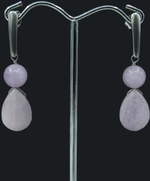 Gyönyörű selyem fényű lilás-rózsaszín kunzit csepp fülbevaló.