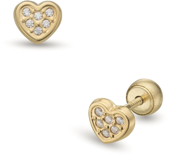 Lisa fénylő szív sárga arany fülbevaló gömb zárral - JTAG-4451-18 (JTAG-4451-18)