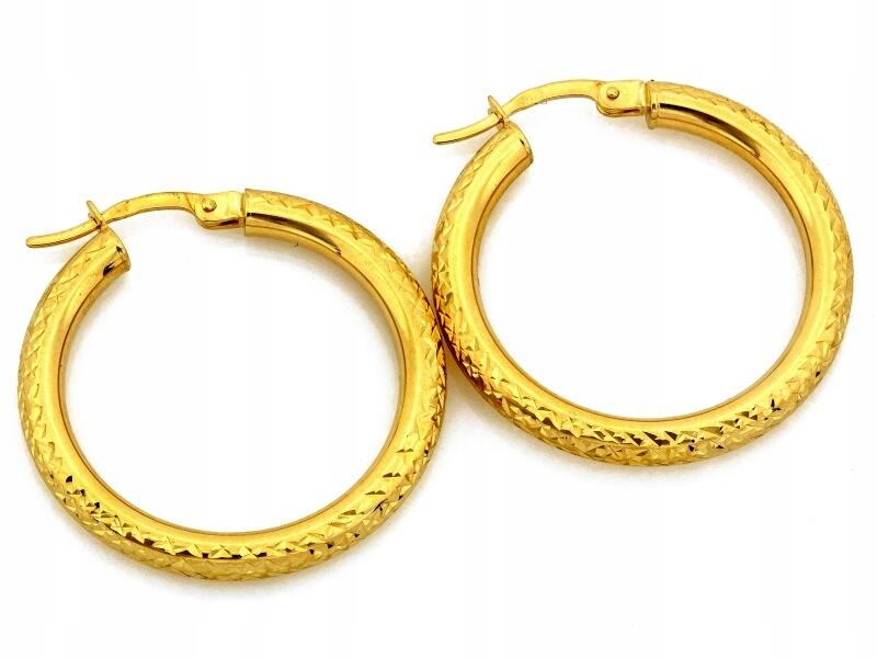 Lovrin 585-ös sárga arany fülbevaló, 28 mm-es, gyémántcsiszolású karika, divatos ajándékALLEGRO