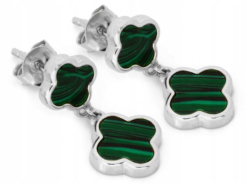 Lovrin 925-ös ezüst függő fülbevaló malachittal, virág mintával, 2, 75g látványos ajándék (62501675)