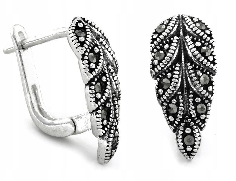 Lovrin 925-ös ezüst fülbevaló, ág levél formájú, markazitokkal, tökéletes alkalomra, ajándéknak (Lovrin)ALLEGRO