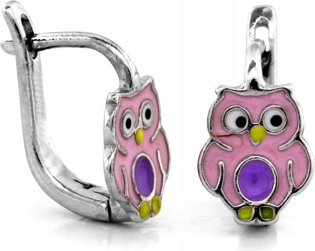 Lovrin 925-ös ezüst fülbevaló, angol kapcsos, rózsaszín zománcozott bagollyal, divatos gyermek ékszer (44240025)ALLEGRO