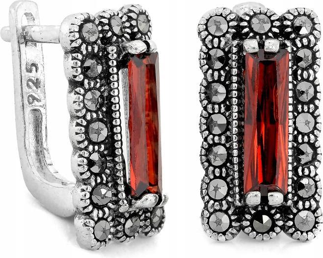 Lovrin 925-ös ezüst fülbevaló, angol kapcsos, téglalap alakú cirkóniával és markazitokkal, divatosALLEGRO