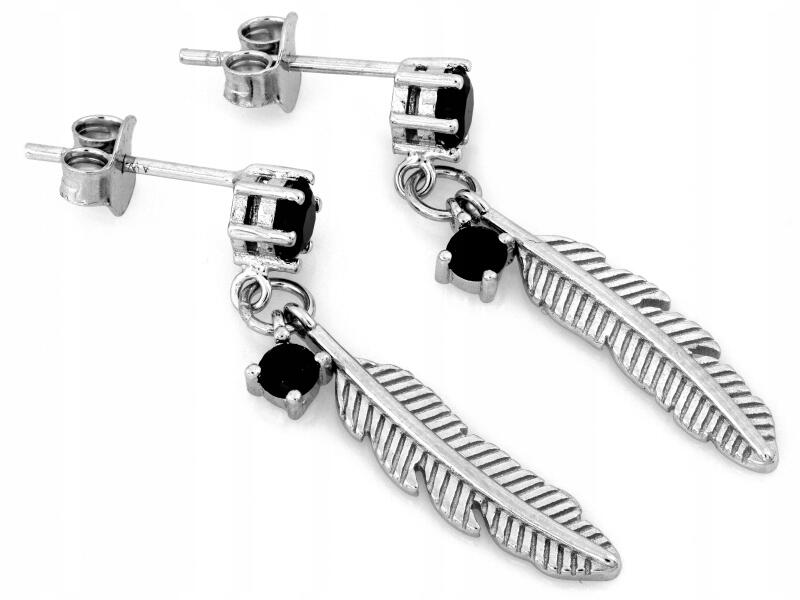 Lovrin 925-ös ezüst fülbevaló, bedugós, függő tollal, ónix díszítéssel ajándék (Lovrin)ALLEGRO