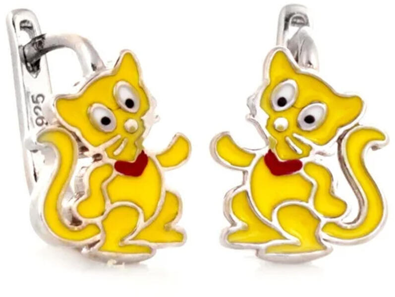 Lovrin 925-ös ezüst fülbevaló sárga cicákkal, lányoknak, angol kapcsos (Lovrin104651)ALLEGRO