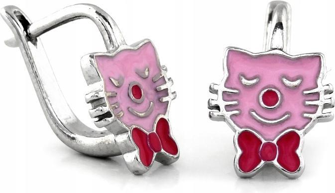Lovrin 925-ös ezüst gyermek fülbevaló, angol kapcsos, rózsaszín zománcozott cicás (Lovrin 55530)ALLEGRO