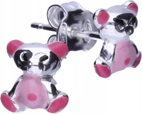 Lovrin 925-ös ezüst női fülbevaló rózsaszín macival 0, 60g - macis fülbevaló lányoknak, ezüst (Lovrin 47614)ALLEGRO