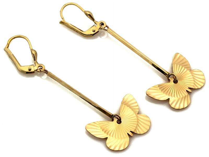 Lovrin Arany 585-ös, hosszú, lógó fülbevaló pillangóval, divatos, angol kapcsos (Lovrin)ALLEGRO