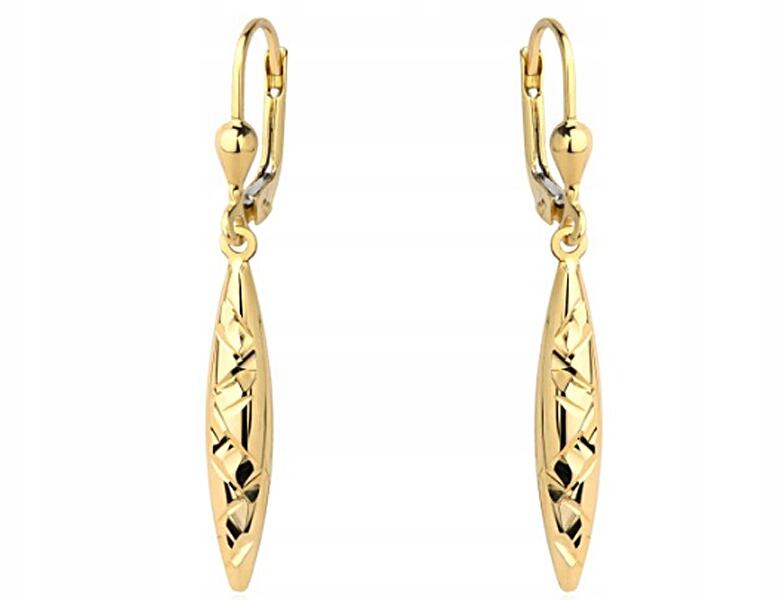 Lovrin Arany függő fülbevaló 585 csiszolt gyémánt mintával, divatos design ajándékba 14k (Lovrin 64224)ALLEGRO