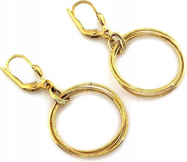 Lovrin Arany fülbevaló 375 három lógó karikával, modern angol kapcsos design, ajándékALLEGRO