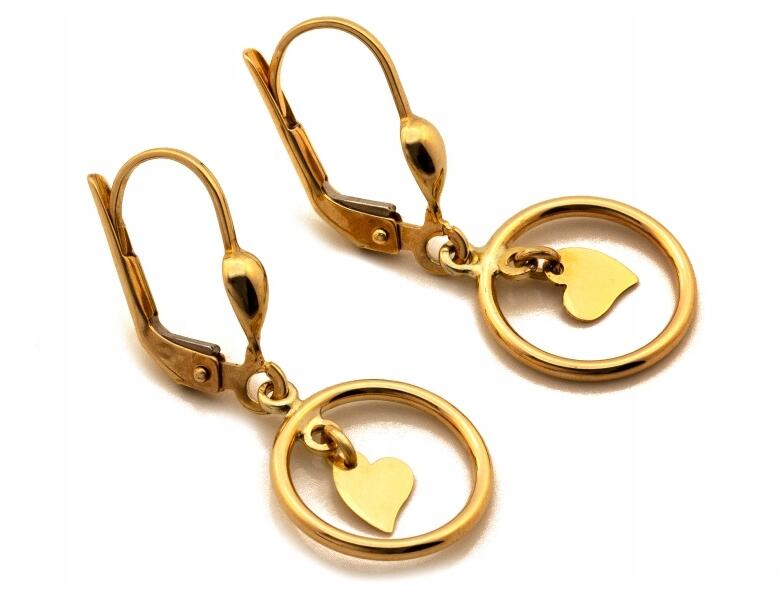 Lovrin Arany fülbevaló 375-ös függő szívekkel, karika formában, angol kapcsos, ajándéknak